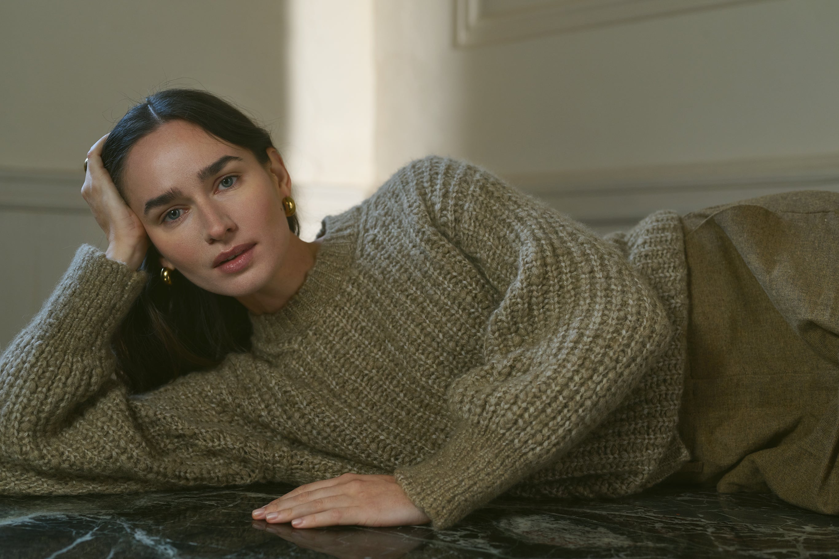 In diesem Thema kommen alle Sand-, Greige- und Grautöne zusammen, kombiniert mit einem Hauch von Metallic. Wir haben die Schönheit von Stoffen und Garnen wiederentdeckt. Reichhaltige Jacquards mit Schimmer und Glanz, beschichtetes Kunstleder und Baumwolltwill. Weiche, fließende Blusen werden aus besticktem und wollgemischtem Mélange-Voile hergestellt. Fantasiegarne und -kabel sind Stile in Grundformen, wie der Rundhalspullover. Mit dem Trend zur Schneiderei und maskulinen Elementen haben wir einen femininen Look geschaffen; bequeme Outfits mit übergroßen Pullovern und Jacken aus Souple-Garnen, Satin-Unterhemden und fließenden Faltenhosen.