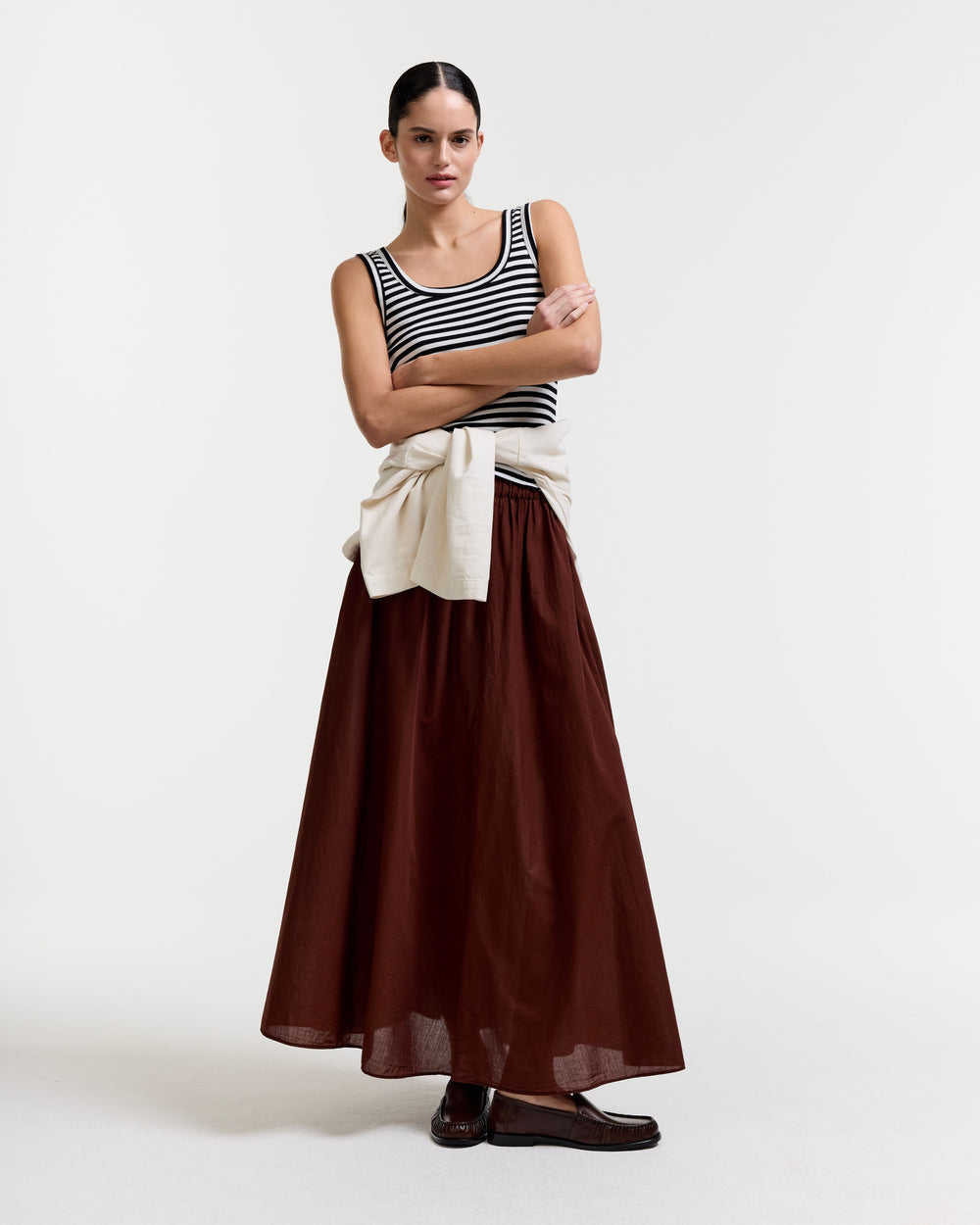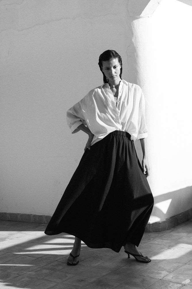 Whereas the idea of fluidity in our winter collection was defined as a small stream flowing to become majestic rivers, now, for our SS26 collection, the word suggests a state of being which is undefined and in movement. A fluidity of the mind can lead to a fluidity of being, it keeps the mind open, curious, and vibrant at any age. Things that move with easy, smooth motions have fluidity. As if our collections are all connected to each other, designing a fashion that seems to hover and never land.