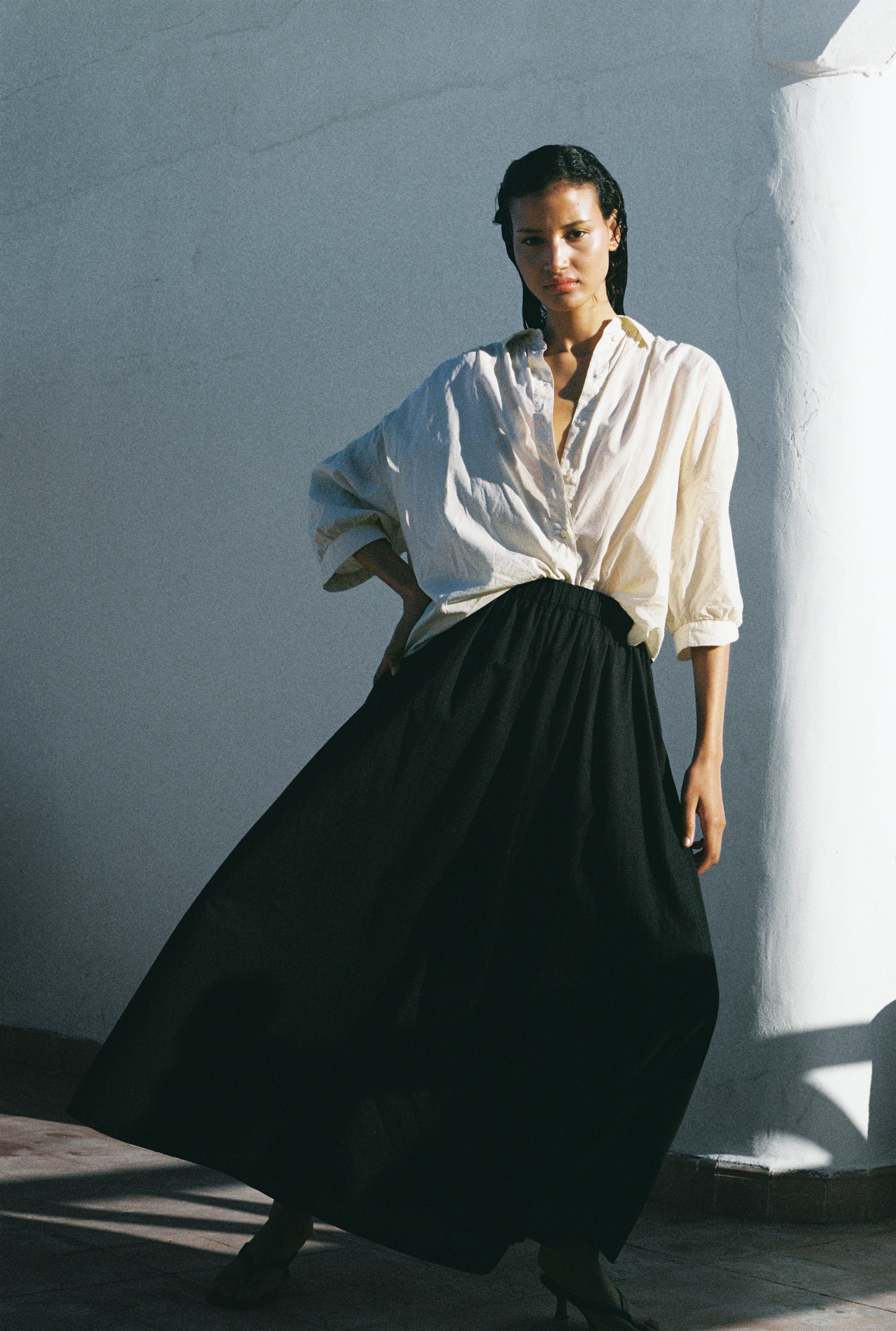 Whereas the idea of fluidity in our winter collection was defined as a small stream flowing to become majestic rivers, now, for our SS26 collection, the word suggests a state of being which is undefined and in movement. A fluidity of the mind can lead to a fluidity of being, it keeps the mind open, curious, and vibrant at any age. Things that move with easy, smooth motions have fluidity. As if our collections are all connected to each other, designing a fashion that seems to hover and never land.